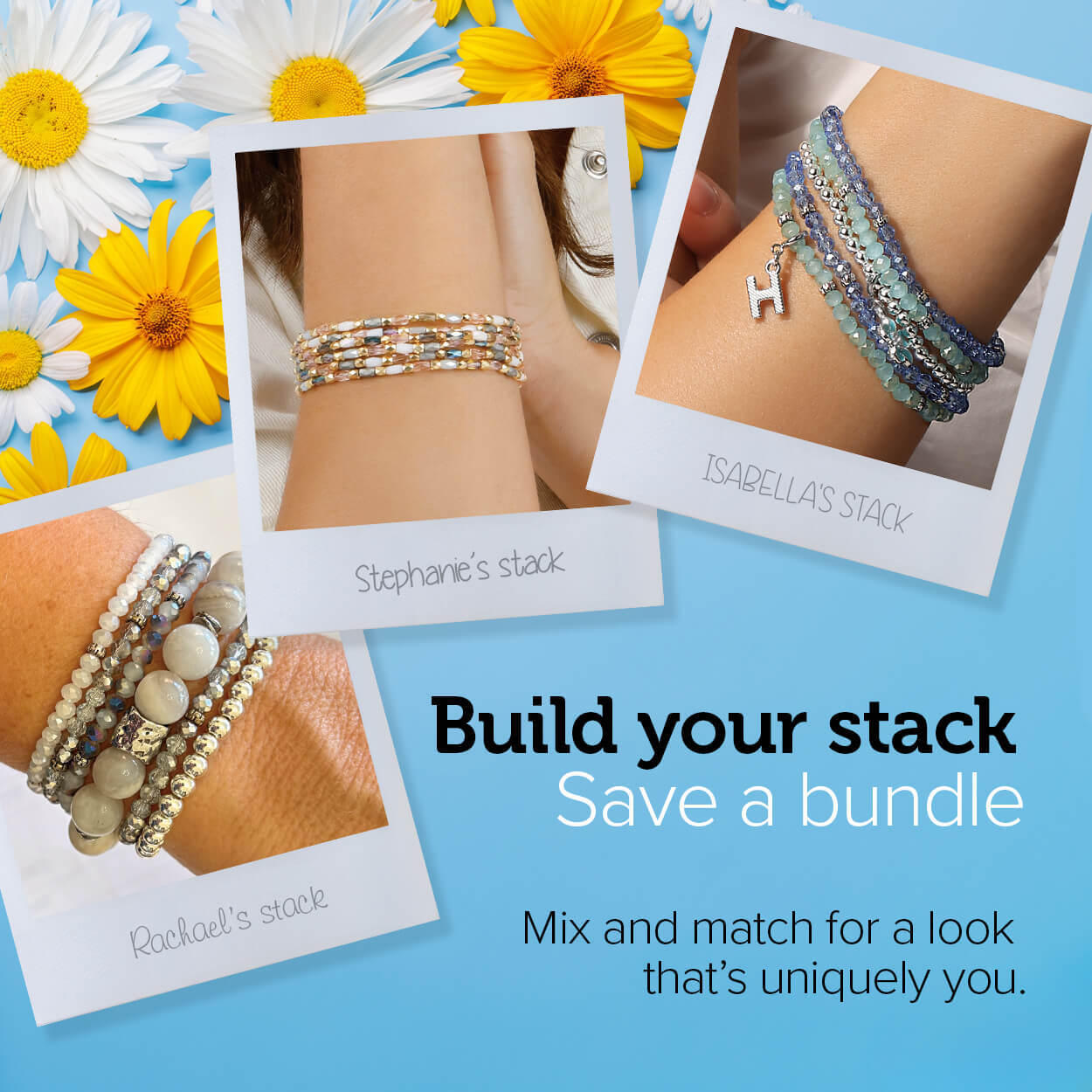Start StackingBuild your perfect bracelet stack with bracelets that are designed for mixing and matching to complete your perfect look! Create a personalized bundle of colors and styles that makes your everyday look brighter, bolder, and uniquely yours!