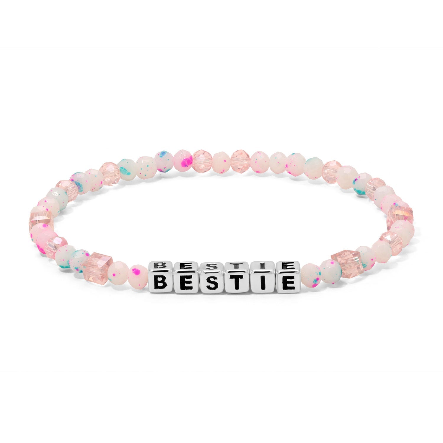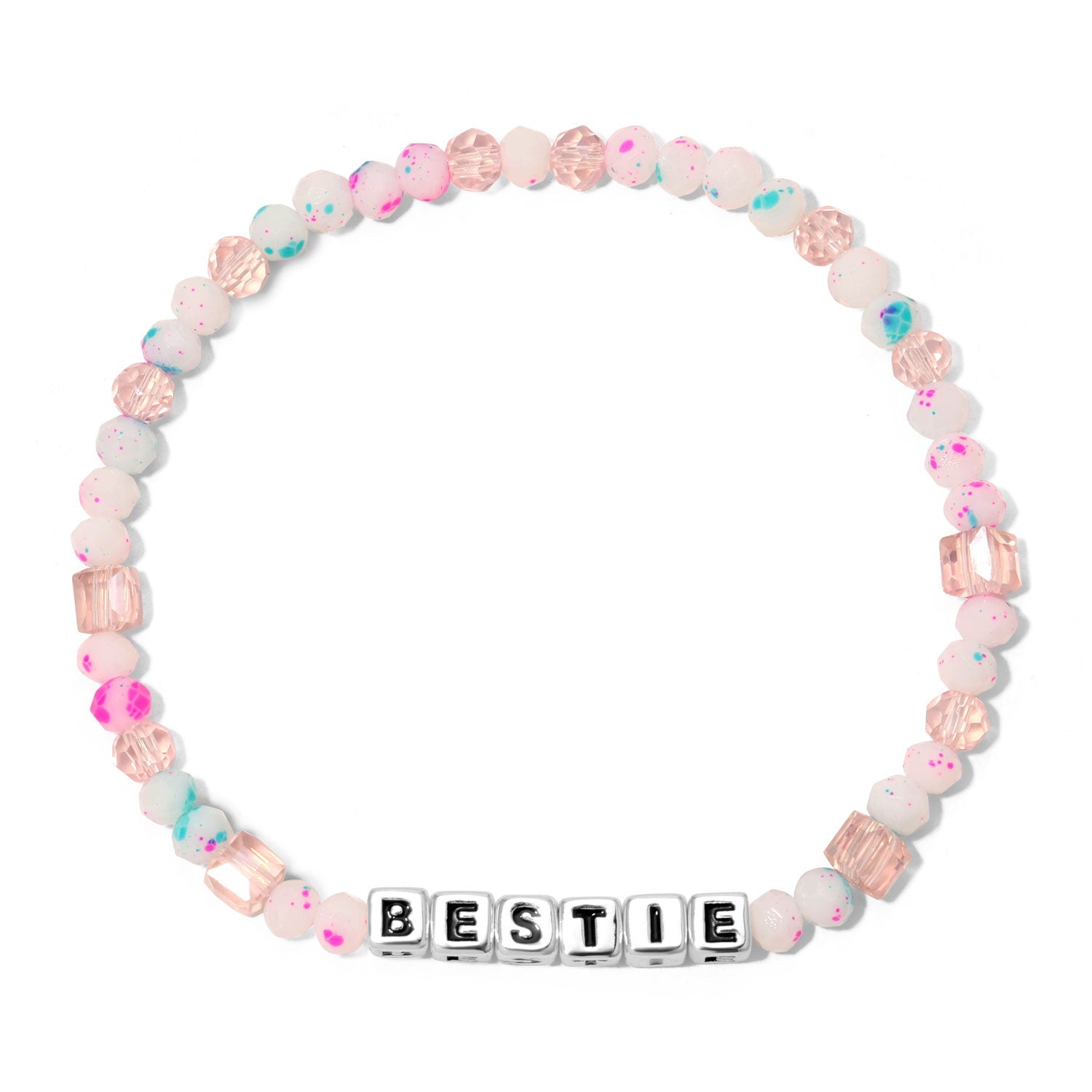 Pink Tie-Dye crystal with Sterling Silver plated letter beads and accent beads. One size fits most.