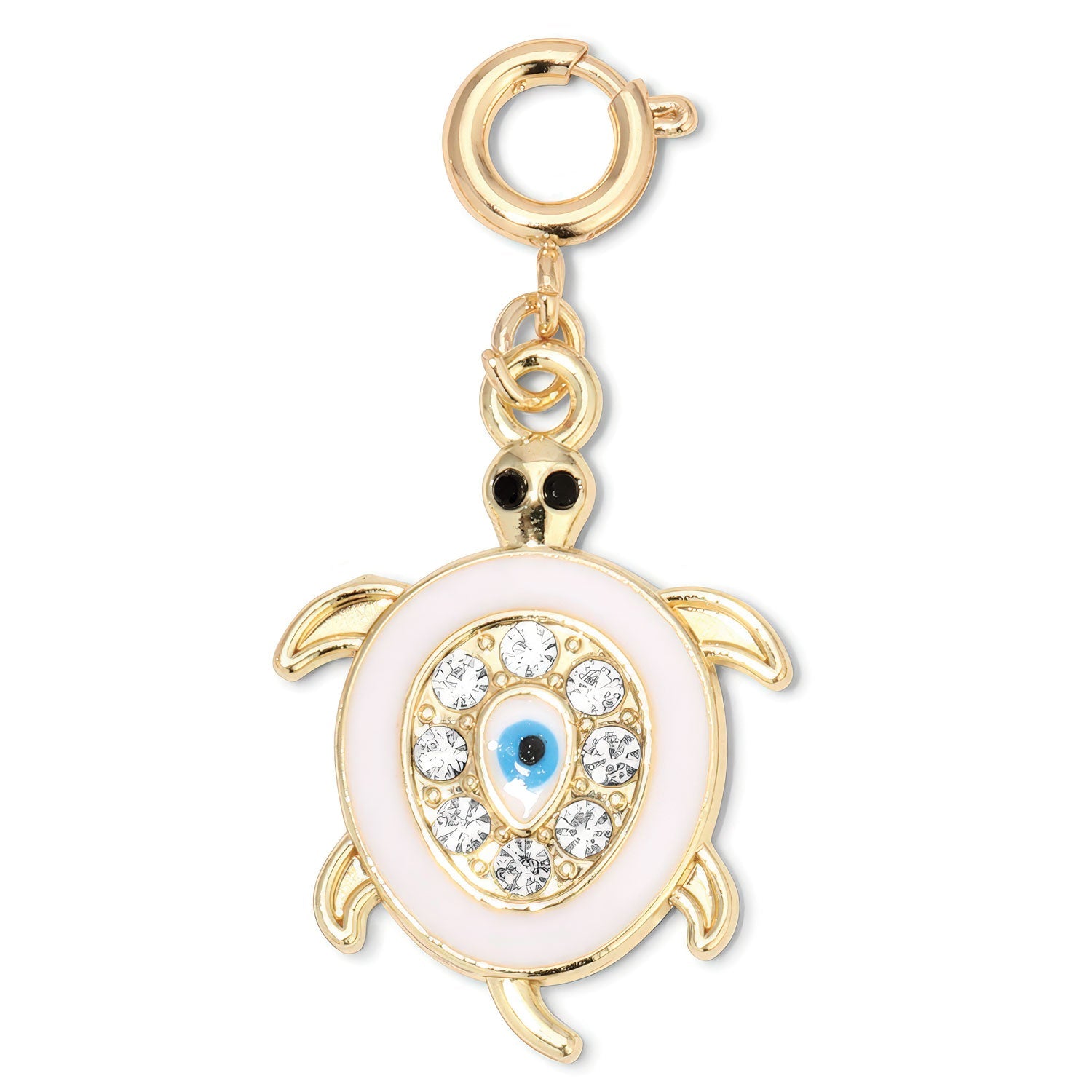 Add a touch of elegance to your accessories with our Rhinestone Turtle Charm! This charm features a stunning combination of white enamel, sparkling rhinestone and crystal, all encased in gold tones. Easily attach it to any bracelet or necklace with the gold plated clasp. Elevate your style with this charming piece!